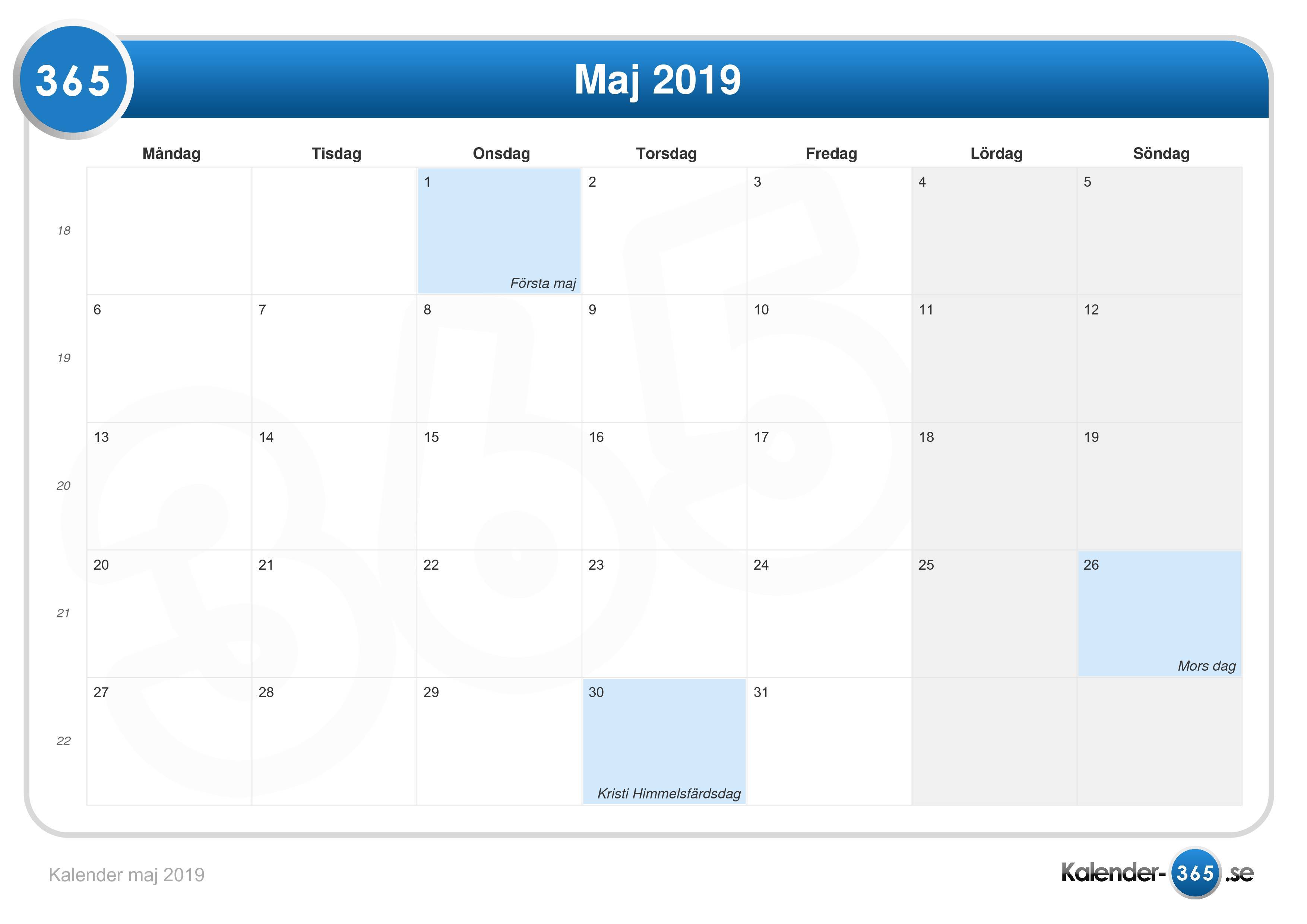Kalender maj 2019 (Liggande format)Gå till Kalender 2019.