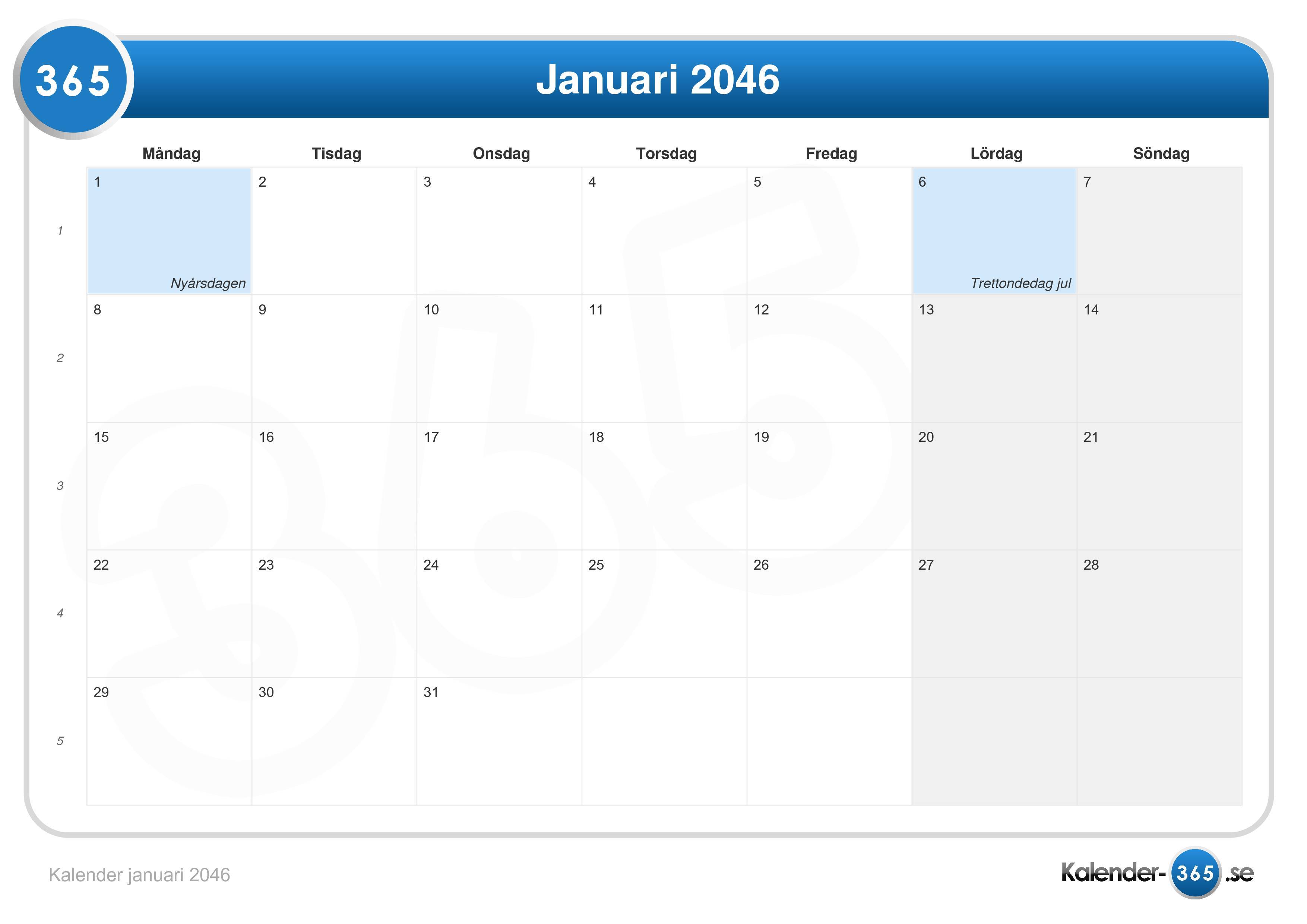 Kalender januari 2046 (Liggande format)Gå till Kalender 2046.