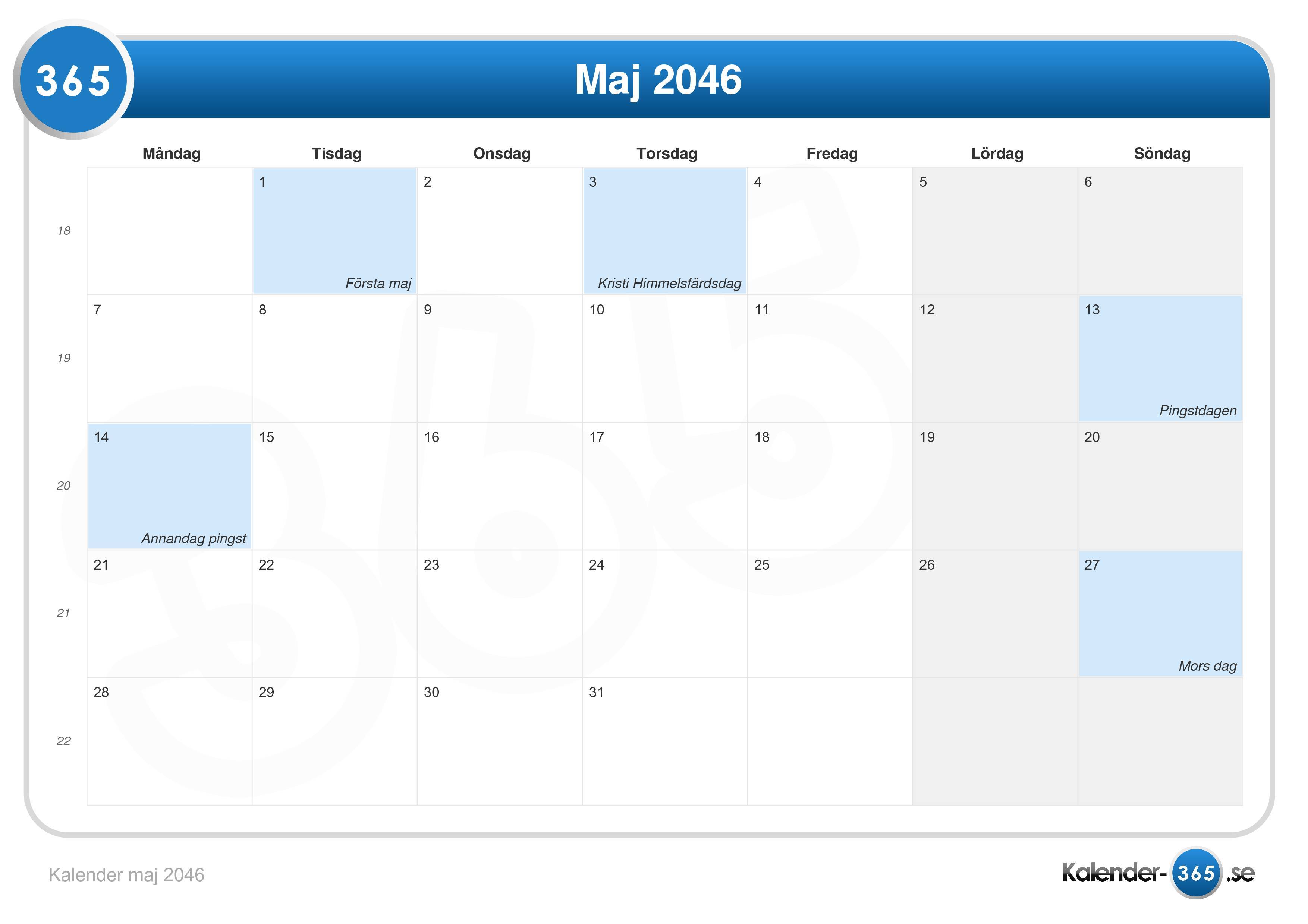 Kalender maj 2046 (Liggande format)Gå till Kalender 2046.